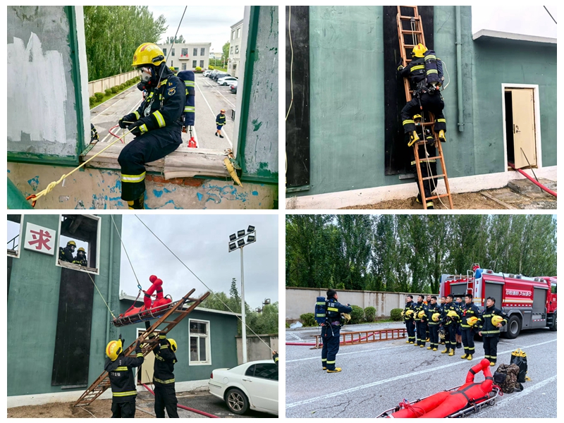 在此次实战化训练中,从最困难、最复杂、最不利的角度出发,模拟训练塔二楼发生火灾,火势有蔓延趋势,大量黑色浓烟涌出,二楼有群众被困,解救群众后二楼火情突变,两名消防员被困火场如何快速逃生等多场景火情,指挥员根据现场和队站编组编程情况,结合安全员对现场进行安全评估后,分配作战任务,现场成立内攻搜救组、外部救人组、警戒组、供水保障组、外部疏散救人组、通信保障组等协同作战,各小组能够紧密配合,迅速展开灭火救援行动,整个训练过程紧张有序。整个实战化训练过程中共开展:空气呼吸器气量管理技术、水带O型圈制作技术、热成像仪侦查搜救技术、双人跪姿推进射水、门控技术、水带管理技术、拉梯水平救助技术、沿拉梯紧急逃生技术、沿安全绳紧急撤离等科目。训练结束后,队站指挥员对训练全过程做出详细复盘总结,针对训练过程中暴露出的问题,深入剖析原因,并进行指导纠正,努力实现人、装备与战术的最佳结合。