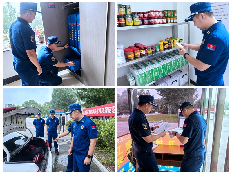 检查过程中,队站干部对执勤车辆、执勤器材、个人防护装备、训练馆、岗哨、训练塔、食堂、浴室、寝室的内务卫生等进行了细致的检查。针对检查中发现的问题进行消防员量化扣分,并要求各班、各库室以正规化达标要求为准绳进行积极整改。