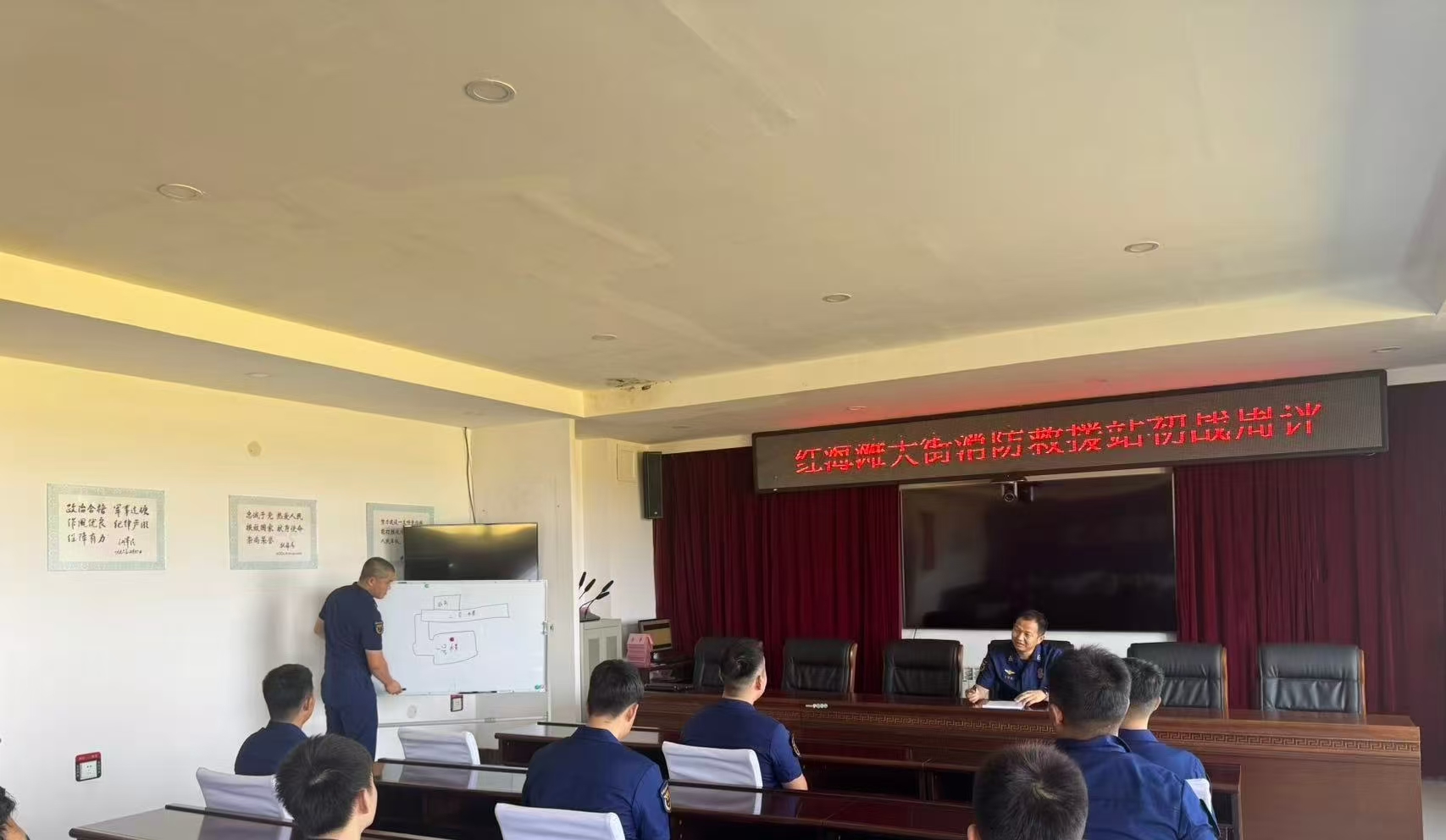 红海滩大街消防救援站组织召开初战周评