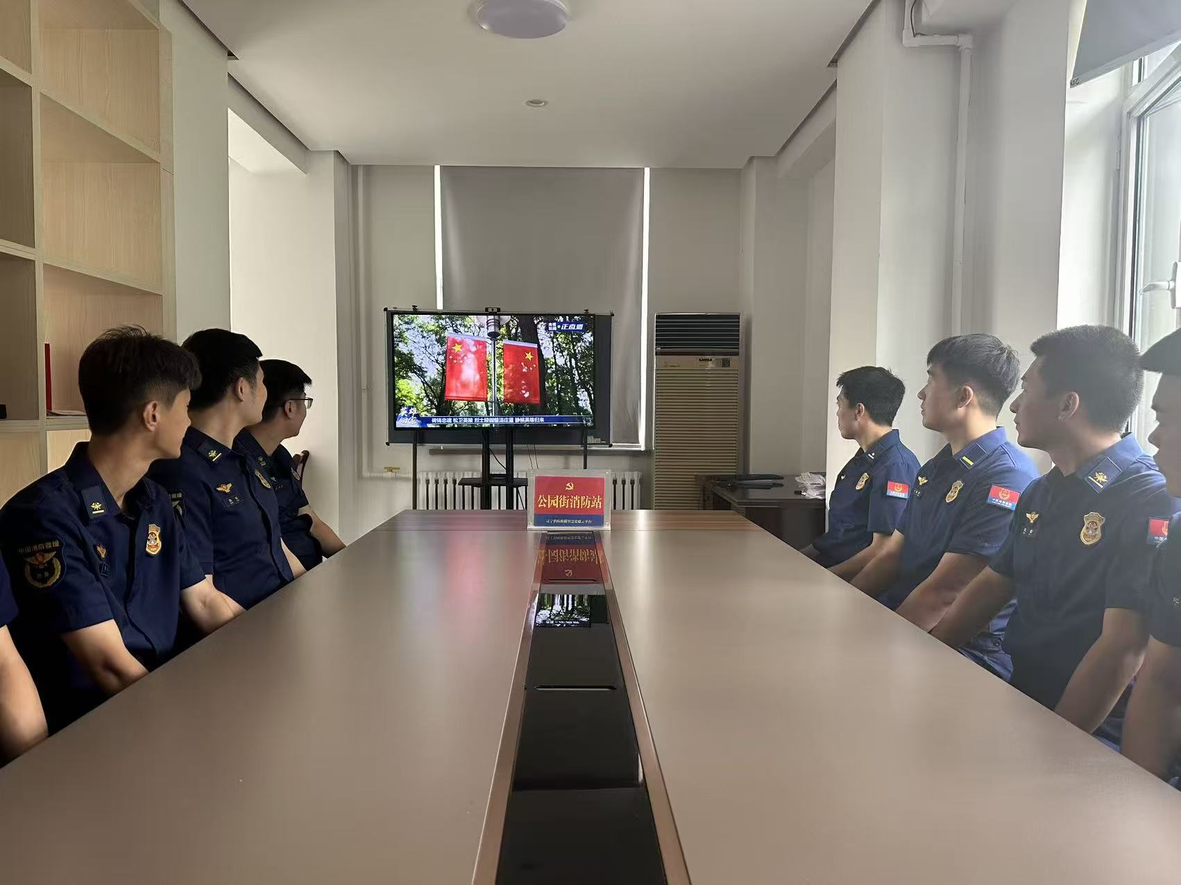 兴隆台区公园街消防站组织观看第十二批在韩志愿军烈士遗骸归国直播