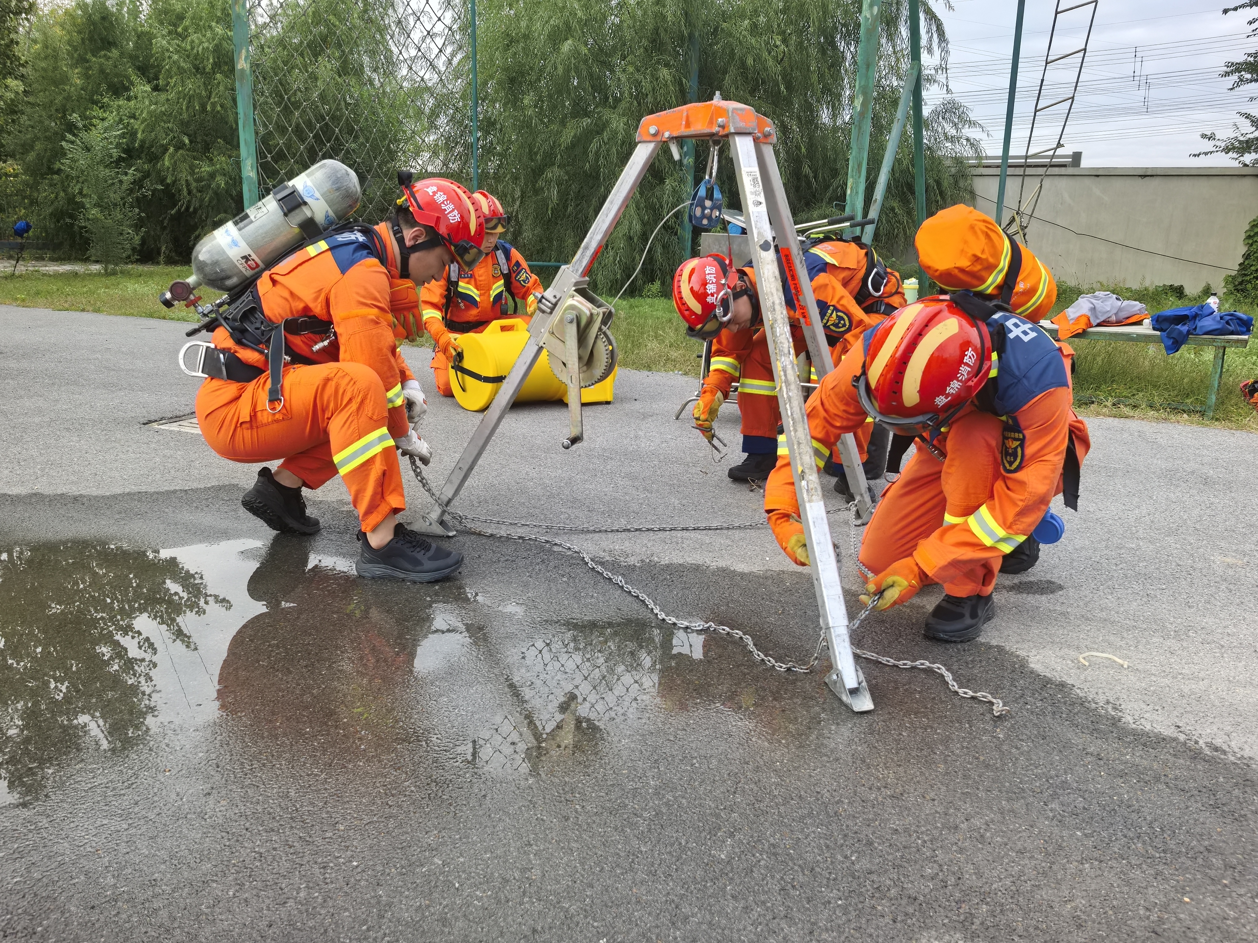 为扎实开展积分制训练,进一步提升消防救援队伍的实战能力和训练积极性,9月 24日,双台子区兵工街消防救援站组织开展利用三脚架救助井下人员操。