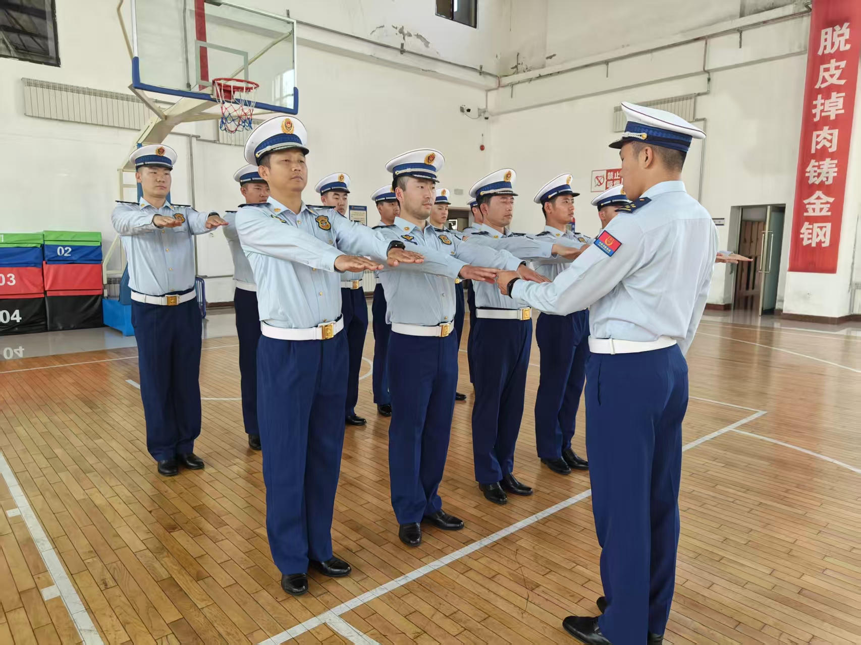 红海滩大街消防救援站站以换装为契机组织开展队容风纪检查和队列训练