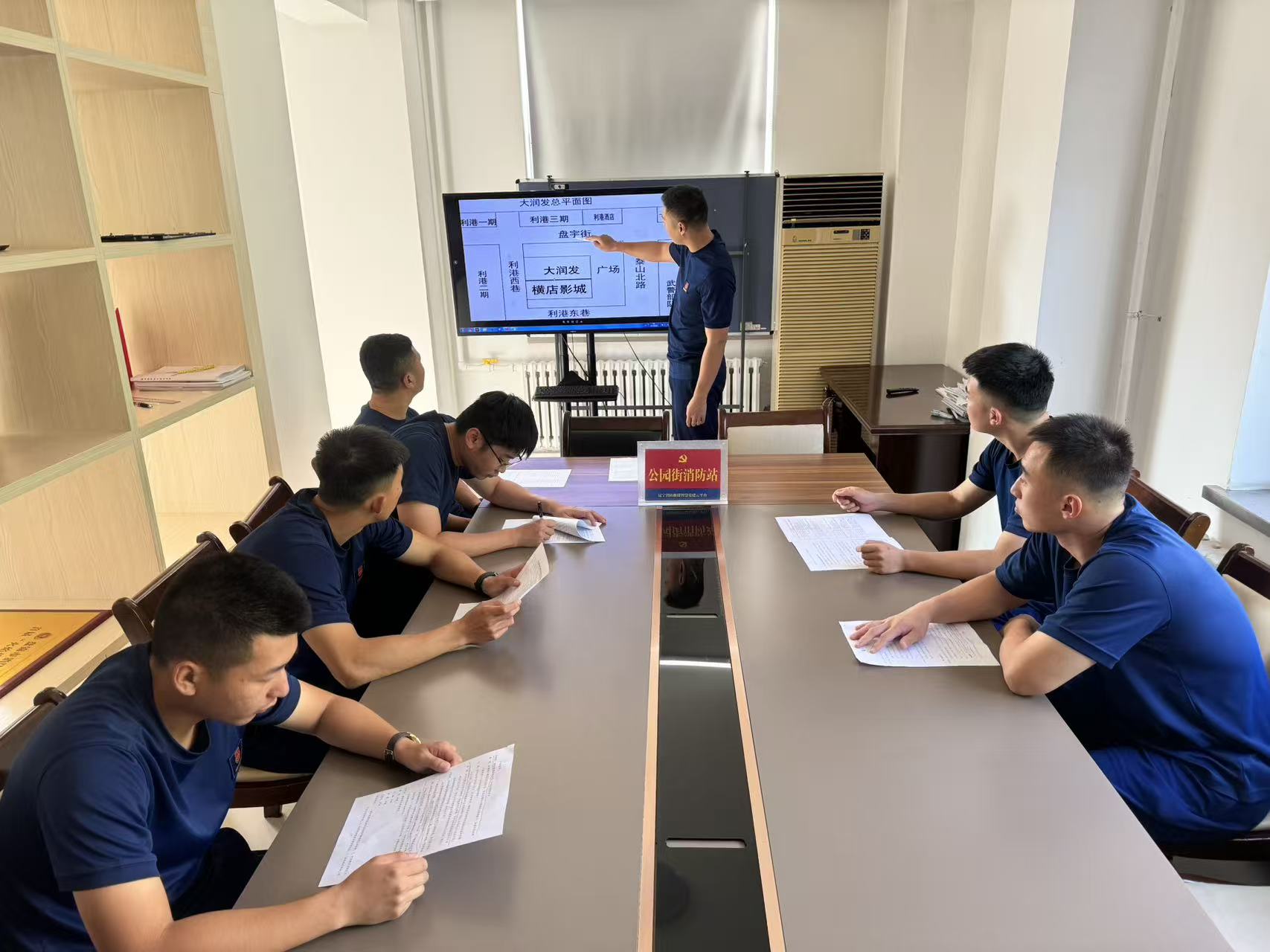 此次推演假定商场发生火灾,伴有人员被困。推演开始前,指挥员首先介绍了该建筑的结构布局、固定消防设施、周边道路水源及当日气象条件等关键信息。随后,参演指战员依托想定场景,按照接警出动、途中指挥、车辆停靠、火情侦察、内攻搜救、阵地设置、破拆排烟、火场供水、安全管控等环节展开深入研讨。各岗位人员(指挥员、班长、战斗员、安全员、驾驶员等)紧密结合自身职责,就力量调集、作战安全、内攻路线选择、人员疏散救助、供水方案及应急通信保障等关键环节踊跃发言,分析难点要点,交流可行战法,现场研讨气氛热烈。