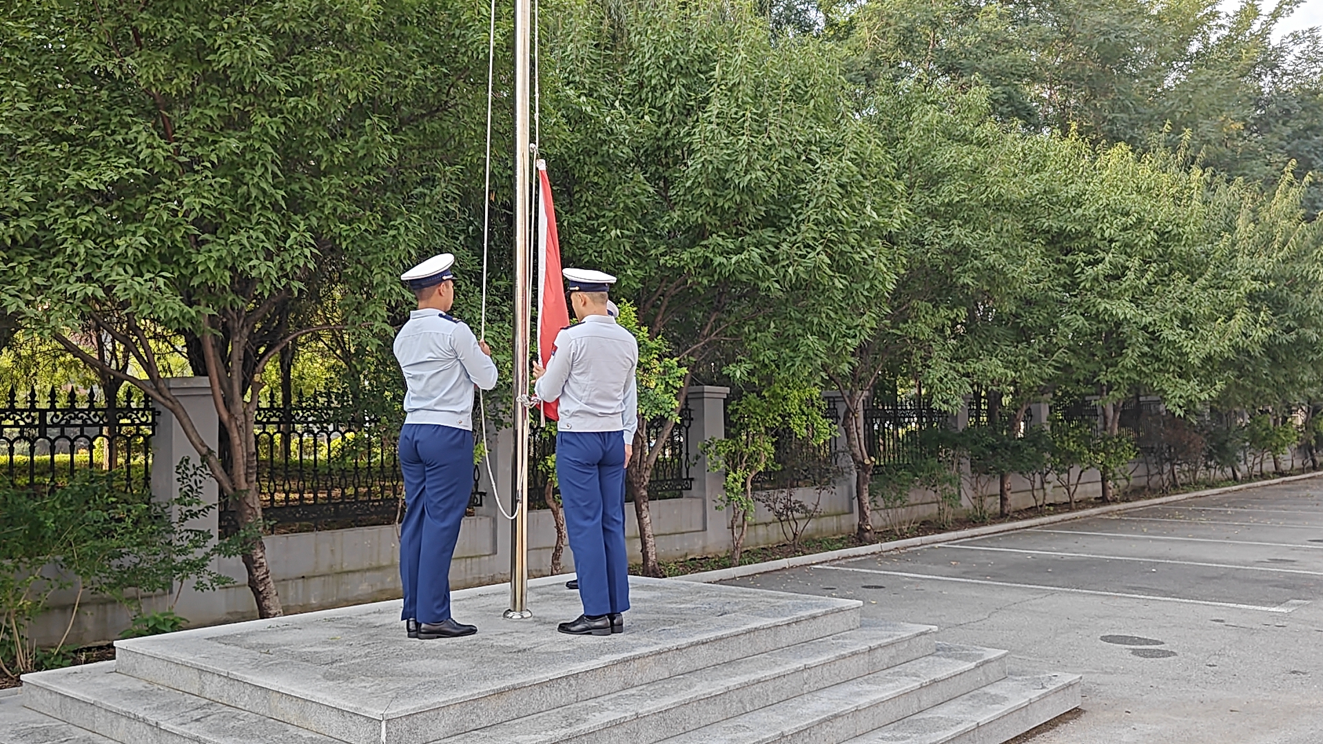 上午8时,仪式准时启动。消防救援人员列队肃立,神情凝重。护旗手迈着铿锵步伐,护送五星红旗走向升旗台。伴随雄壮国歌,全体人员行注目礼,目送国旗冉冉升起,将对祖国的忠诚与对先烈的追思融入其中。