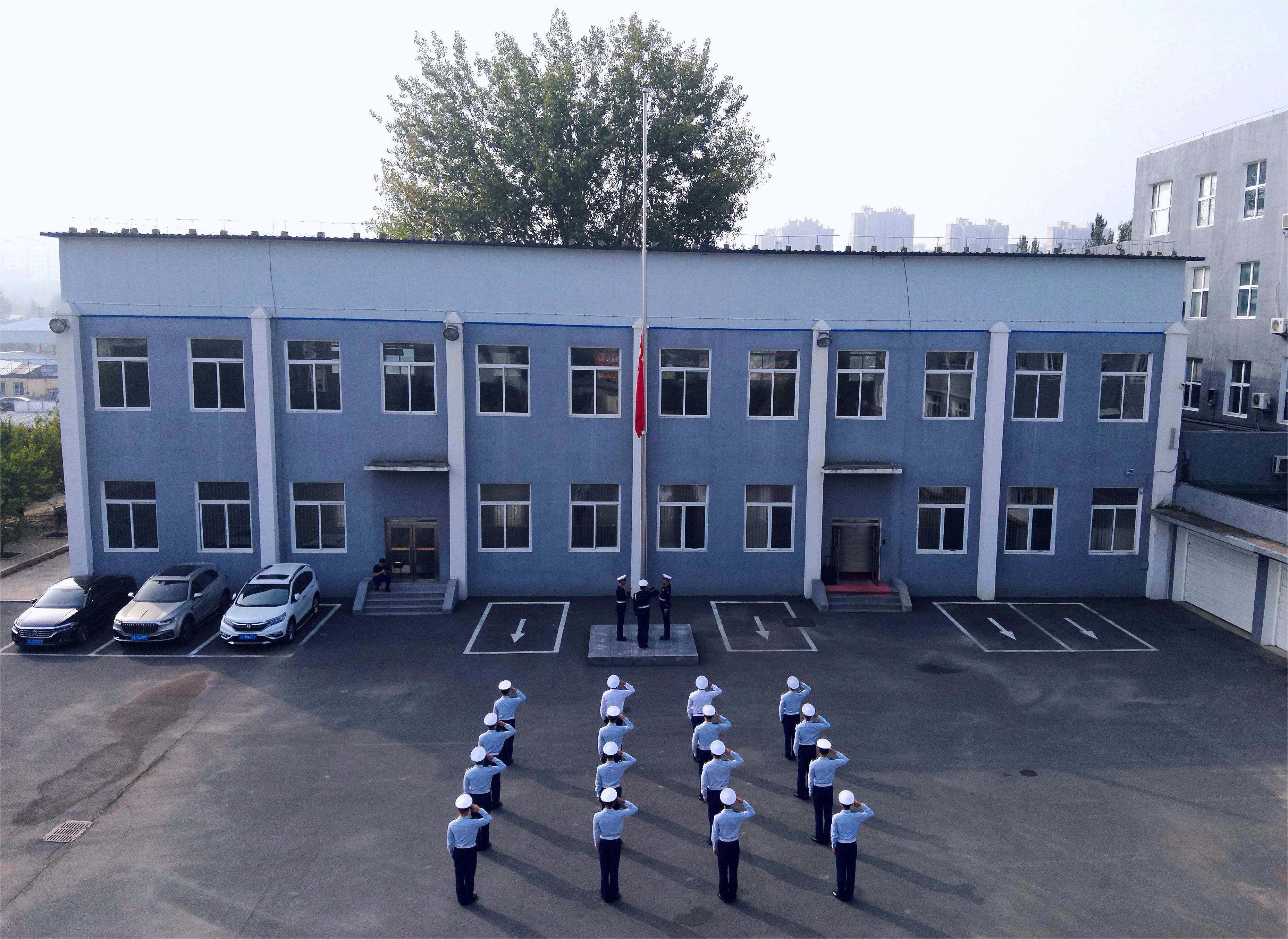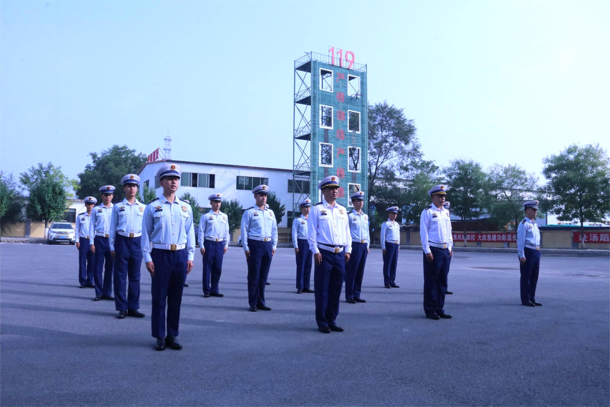 兴隆台区消防救援大队举行国庆升旗仪式