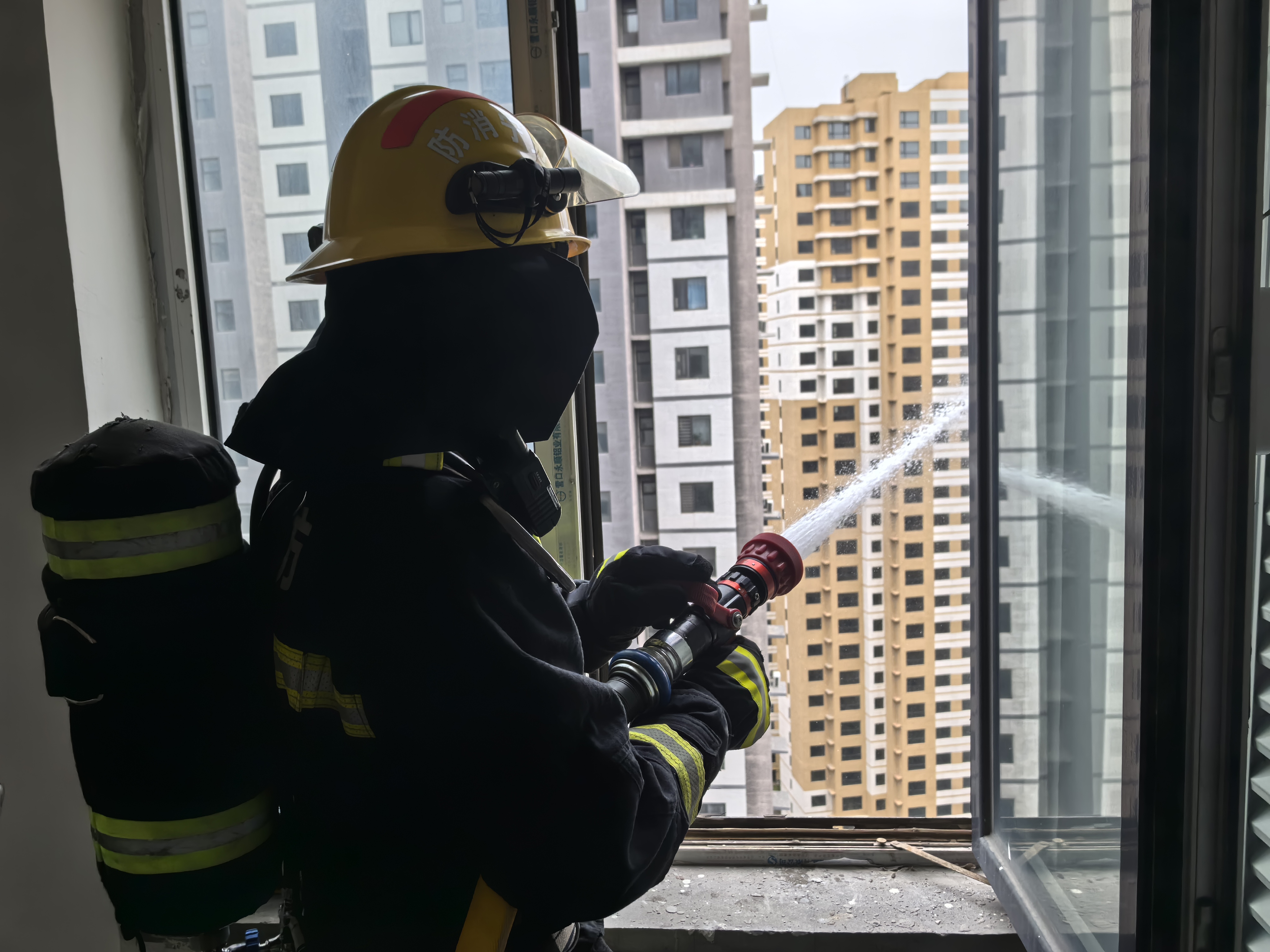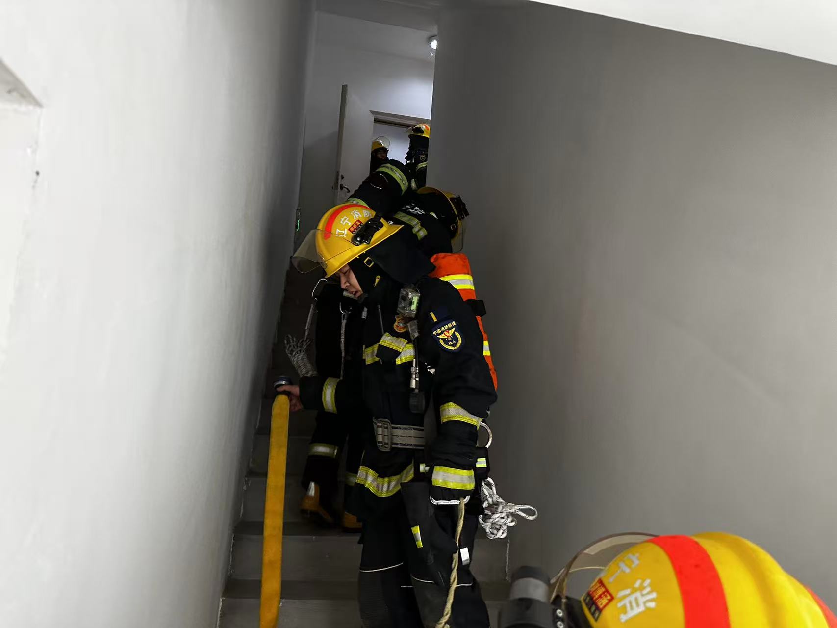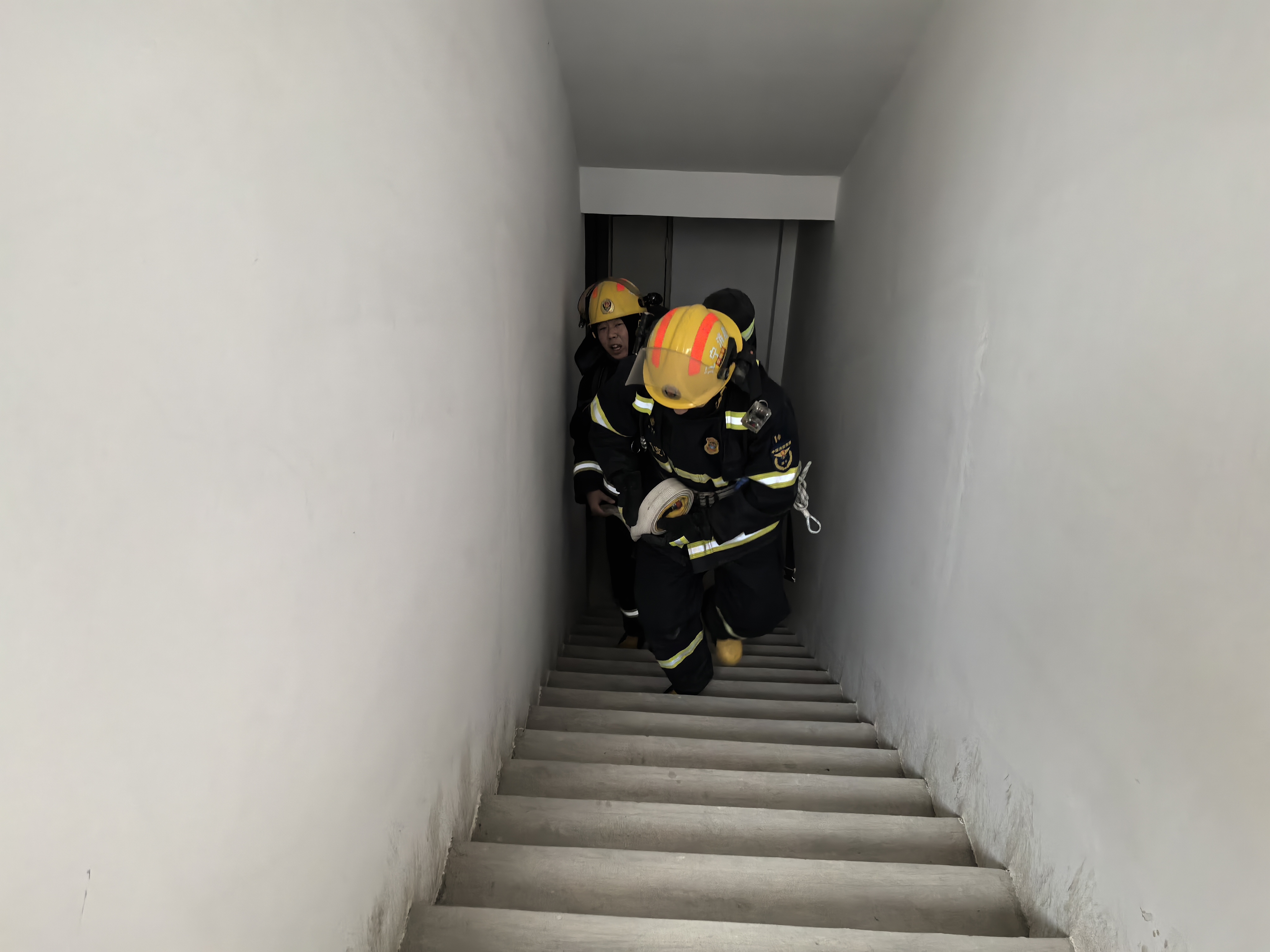 指战员严格遵循实战标准,在多层高楼建筑场景中,分批次开展水带铺设测试。在蜿蜒铺设测试环节,指战员沿楼梯间、楼层走廊等通道,有序将水带呈蜿蜒状展开,模拟火灾现场复杂通道环境下的水源输送;在垂直铺设测试环节,水带则从高楼外侧垂直向下延伸,还原高层火灾中跨楼层快速供水场景。每轮测试均详细记录水带工作压力、出水流量、喷射射程等核心参数,全面评估不同铺设方式下的水带适配性与效能。