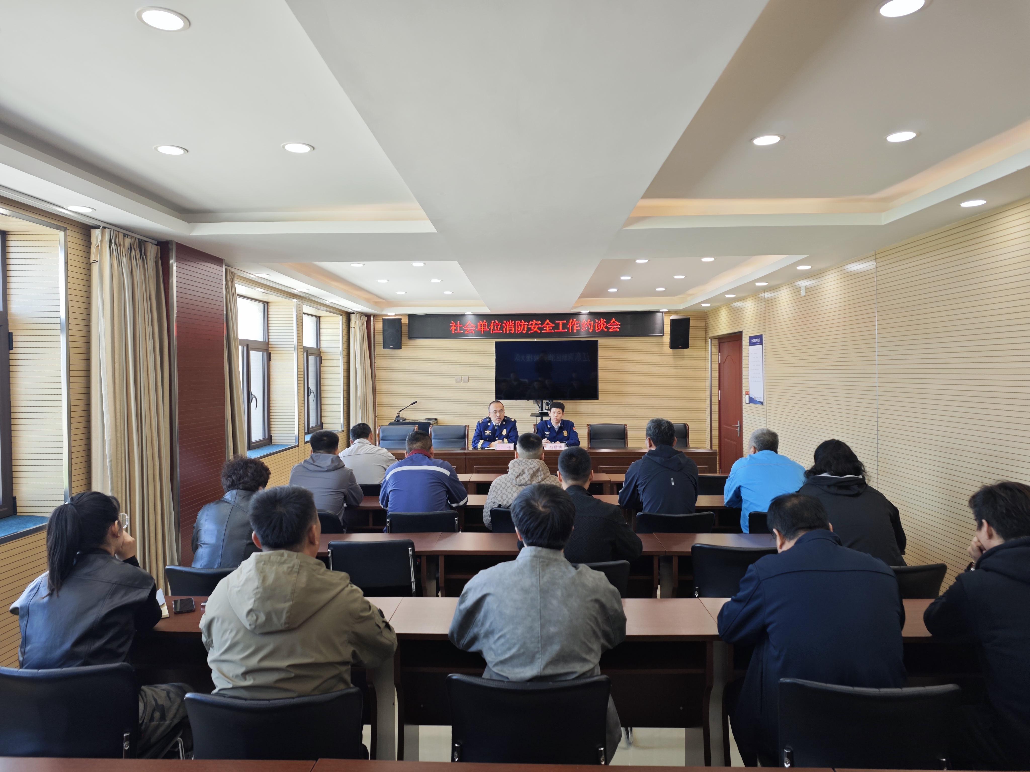 为切实压实社会单位消防安全主体责任,提升火灾防控与应急处置综合能力,10月13日,辽东湾新区消防救援大队组织召开社会单位消防安全专题约谈会,大队及队站指挥员围绕“防火”与“灭火”两大核心任务做好工作部署,为辖区消防安全形势稳定夯实基础。