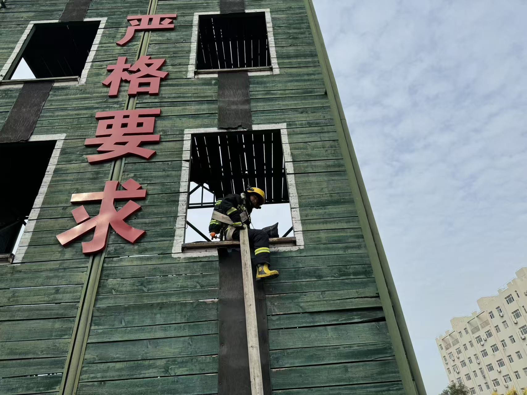 为进一步加强灭火救援作战训练安全工作,全面提高指战员实战应变能力,切实提升消防指战员火场紧急避险能力。10月14日,兴隆台区公园街消防救援站开展紧急避险训练。
