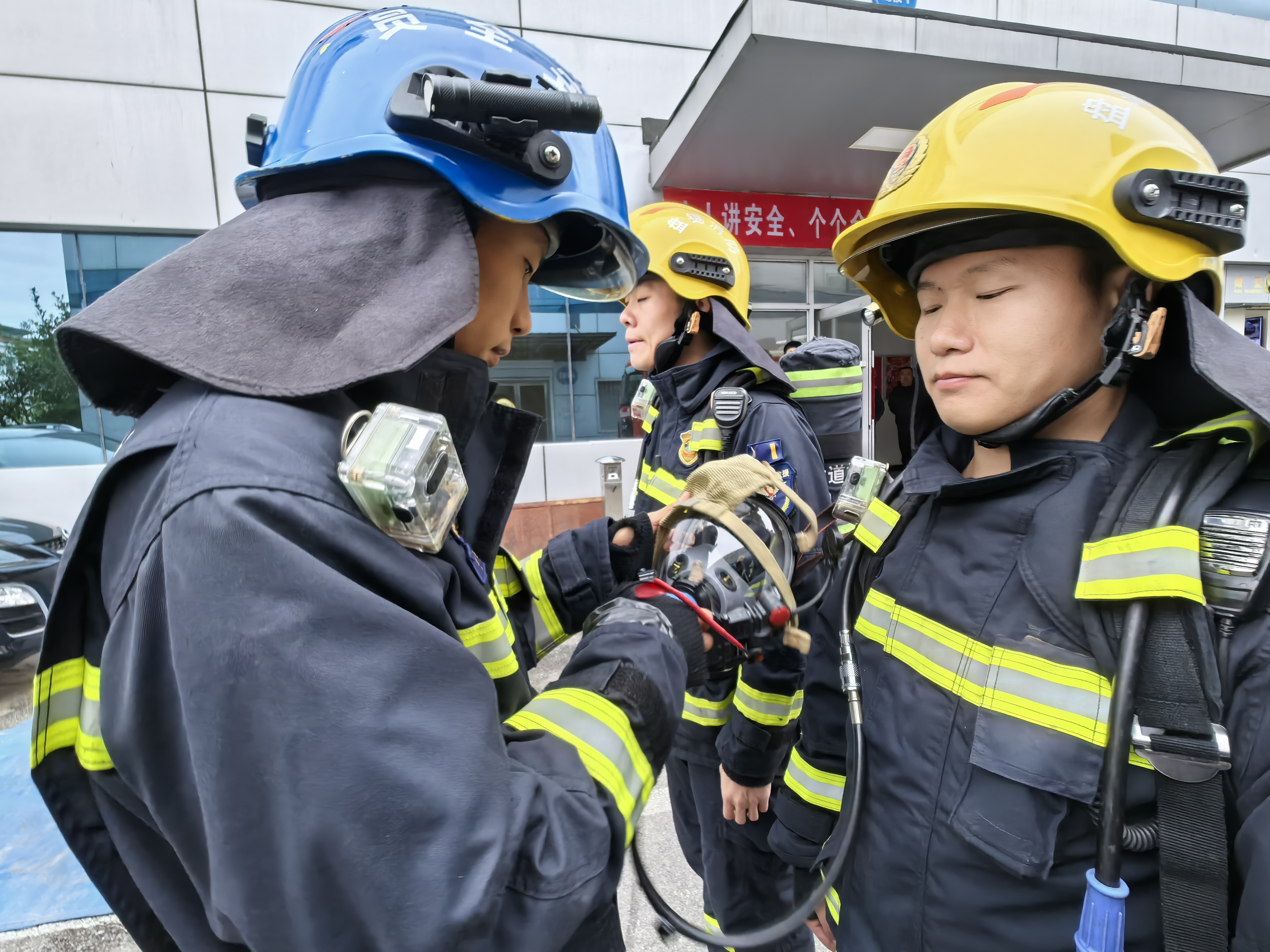 为进一步加强全体救援人员对辖区重点单位场所的熟知程度,切实提高应急处理事故救援能力,确保一旦发生火灾,能够快速、高效处置,有效预防和遏制各类重、特大事故的发生,近日,兴隆台区向海大道消防救援站深入辖区重点单位开展“六熟悉”演练工作。