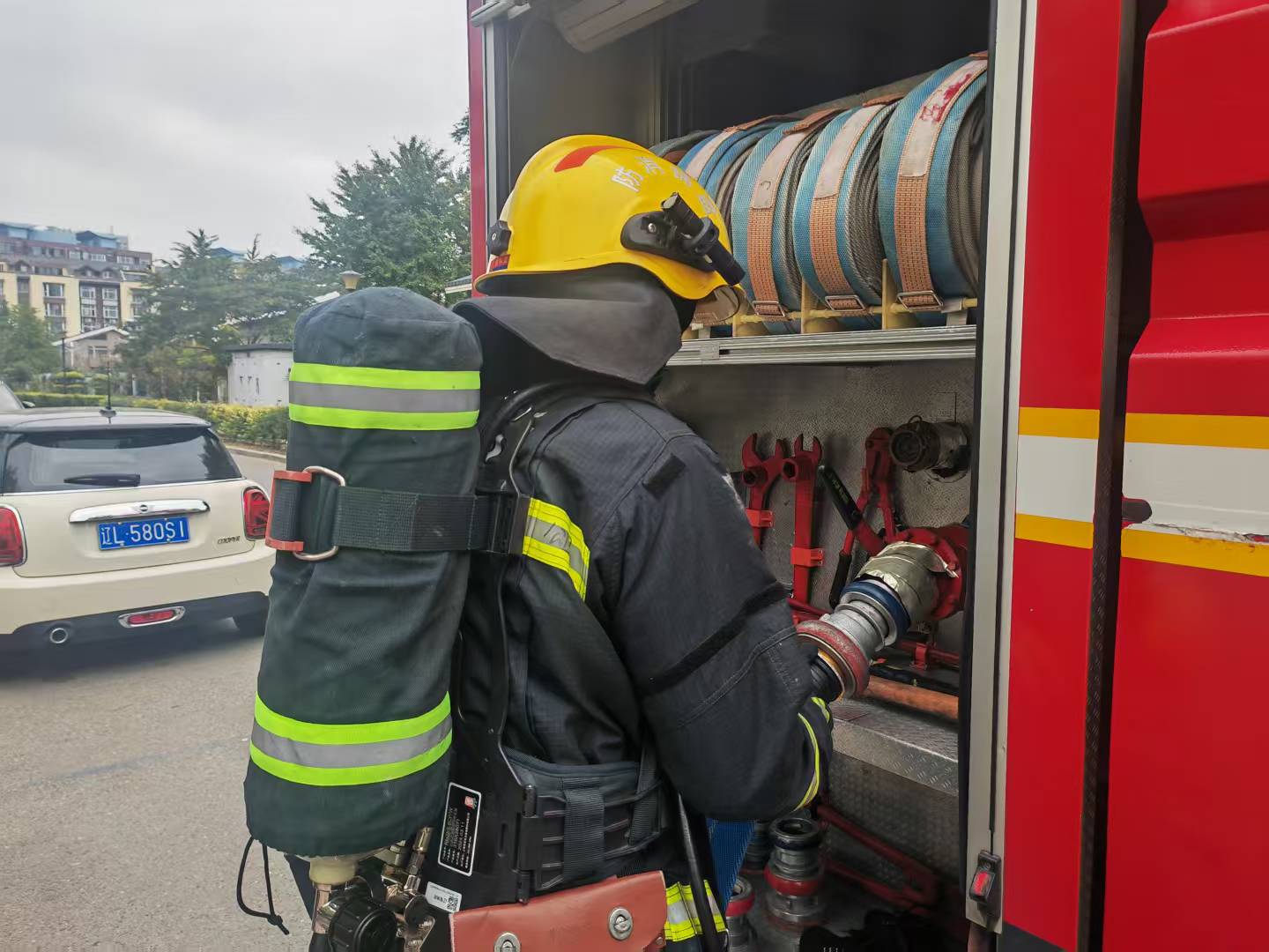 兴隆台区公园街消防救援站开展实景训练