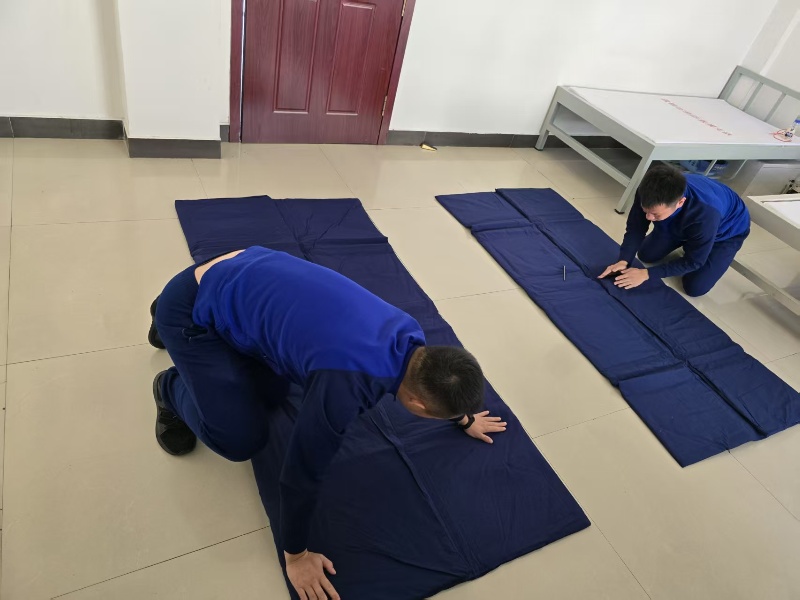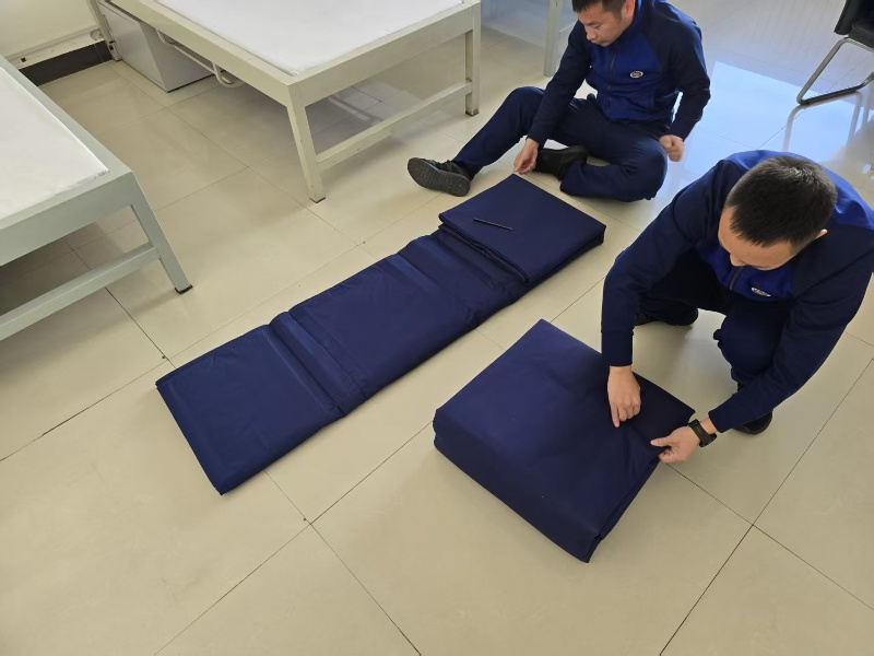 现场展示了 “模型被” 与 “标准被” 的对比样本:“模型被” 边角虽整齐,但内部填充物结块,展开后需长时间整理;“标准被” 则做到 “叠放规范、展开迅速、使用舒适”,完全贴合应急救援中 “快速响应、高效休整” 的需求。通过直观对比,全体指战员深刻认识到:内务规范不是 “表面文章”,而是与救援效率、队伍作风紧密相连的 “基础工程”,必须坚决摒弃 “为叠而叠” 的模板化思维,树立 “实用为基、规范为要” 的正确理念。